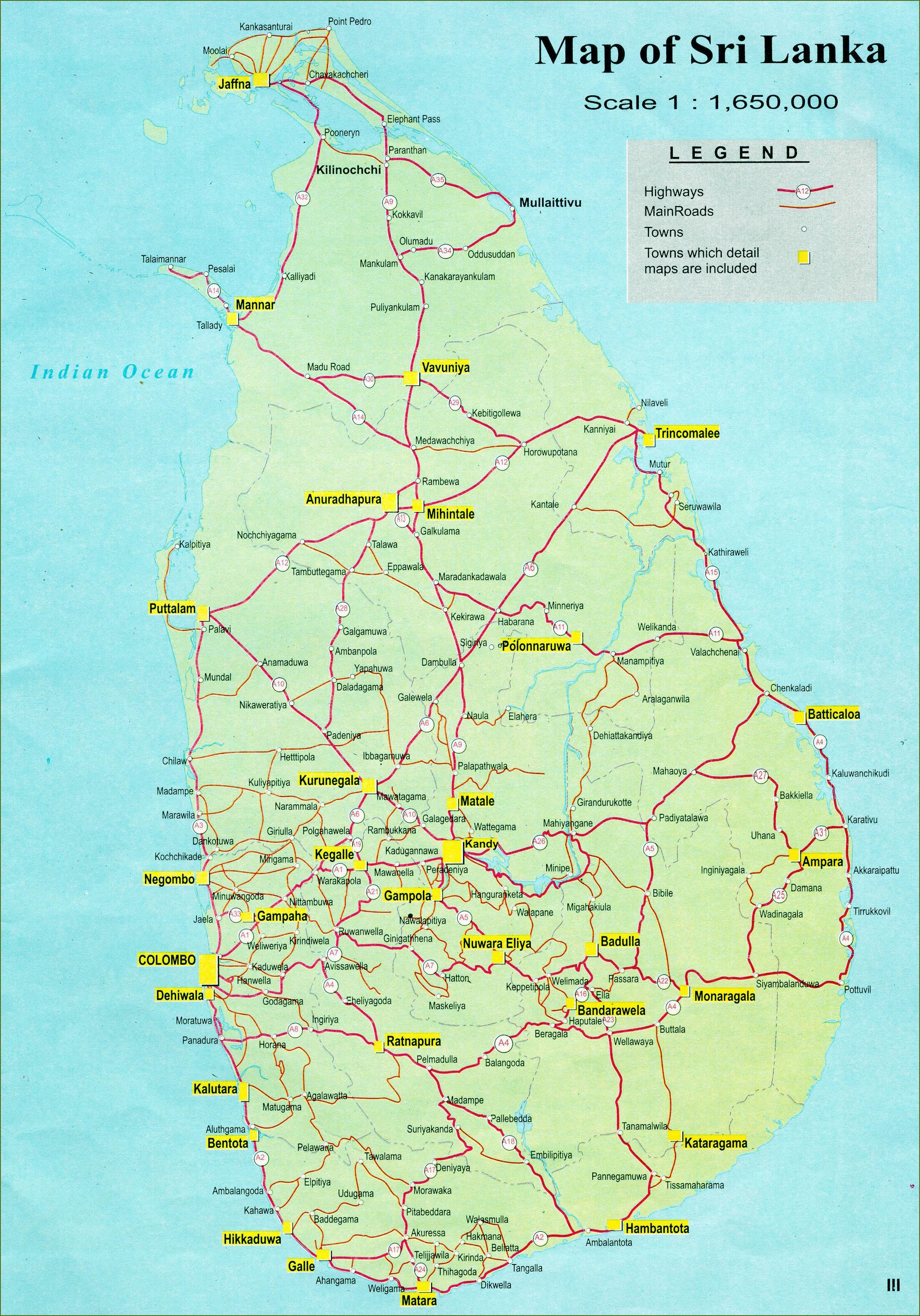 Sri Lanka maanteel (road map). Sri Lanka marsruudi kaart (Lõuna-Aasia - Aasia) print. Sri Lanka marsruudi kaart (Lõuna-Aasia - Aasia) alla laadida.